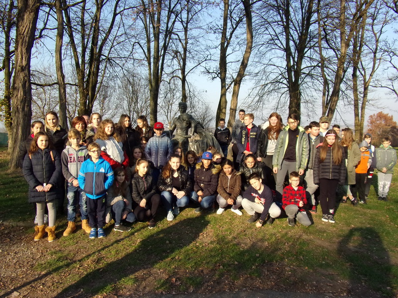 A projektbe kirándulás is volt tervezve a partneriskolákhoz. Ezt várták a legjobban a gyerekek. November 7-én egy ködös korai őszi reggelen útnak indultunk Romániába. A 2 napos utazásra rengeteg program volt betervezve. Irodalmi és történelmi nevezetességeket néztünk meg. Nagykárolyban megtekintettük a romantikus, régi lovagvárakra emlékeztető, impozáns Károlyi-kastélyt, mely gyönyörű angolparkjával, felújított dísztermeivel, gazdag gyűjteményeivel kihagyhatatlan látványosság volt. A gyerekeknek nagyon tetszett az afrikai trófea-és fegyvergyűjtemény. Itt találkoztunk Pazdera Andreával, aki a 2 nap során mindenhová elkísért bennünket. Érmindszenten is jártunk, itt megnéztük Ady Endre emlékmúzeumát. Az udvar egyik végében van az Ady-kúria, melyben emlékmúzeum van, és a másik végében található a régi parasztház jellegű épület, melyben a költő született. Ebben a család régi bútorai láthatók. Kölcsey Ferencről mindenkinek Szatmárcseke jut eszébe, pedig a Himnusz költője Sződemeteren született. Jelenleg Kölcsey szülőháza a román görög katolikus parókus szolgálati lakása. A református lelkész feleségétől öröm volt hallani, hogy őrzik magyarságukat és hogyan ápolják Kölcsey emlékét, egy olyan településen, ahol már a magyarok vannak kisebbségben. A közel négyszáz lakosból mindössze félszázan magyarok. A nehézségek ellenére komoly munkába kezdtek az itt élők. Eltervezték, hogy egy olyan épületet építenek, amely méltó módon mutatja be Kölcsey életét. Megnéztük a templom mellett a költő egész alakos szobrát, majd elénekeltük a Himnuszt.
