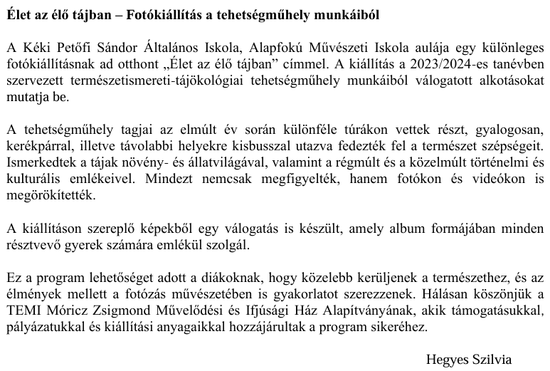 Élet az élő tájban – Fotókiállítás a tehetségműhely munkáiból